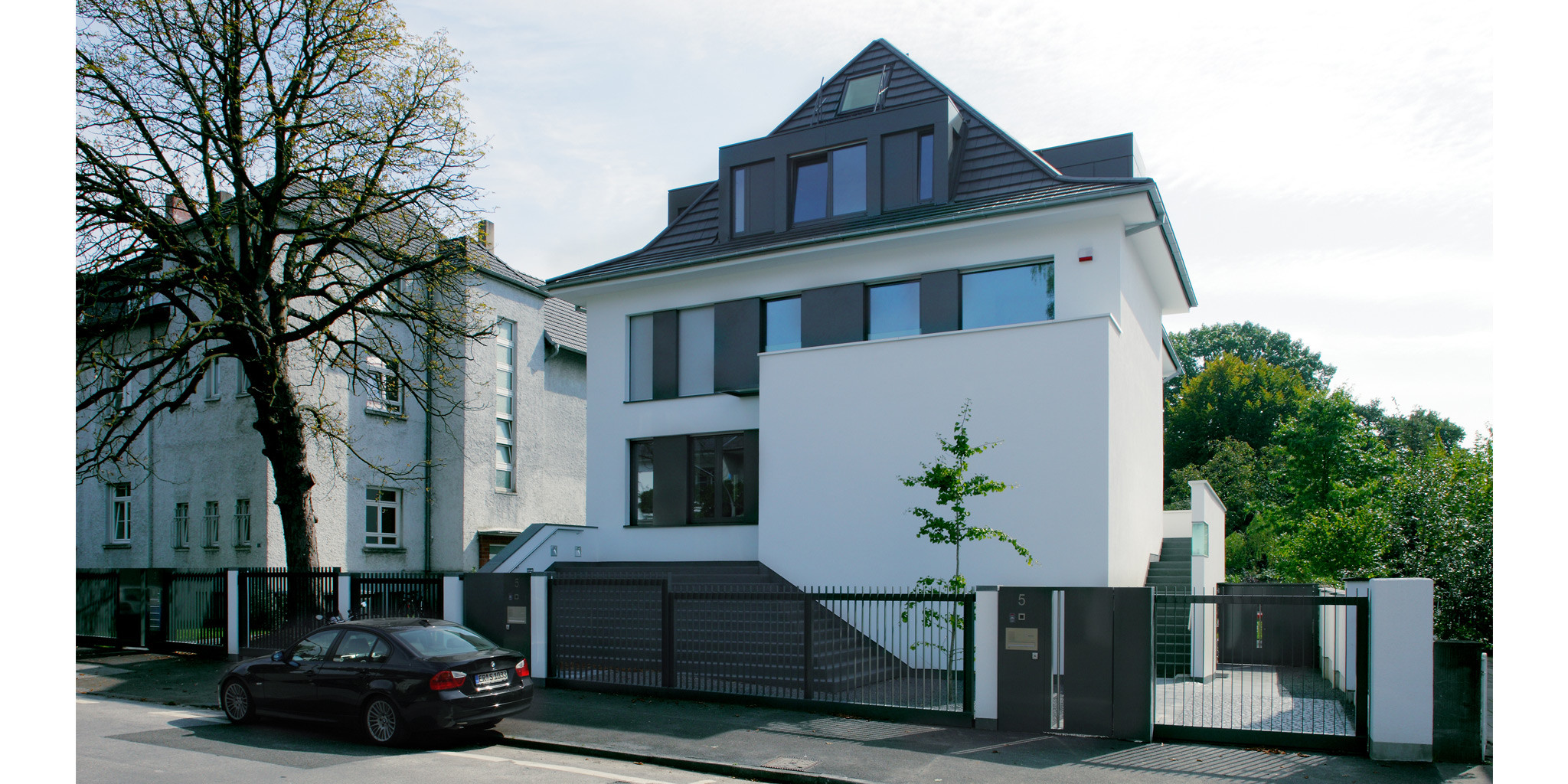 Der Bebauungsplan hätte, in dem Fall des Abbruches, nur Neubauten mit deutlich geringerer Wohnfläche zugelassen. So wurde in bester Lage der Altbestand erhalten und nach neuesten technischen Standards kernsaniert.